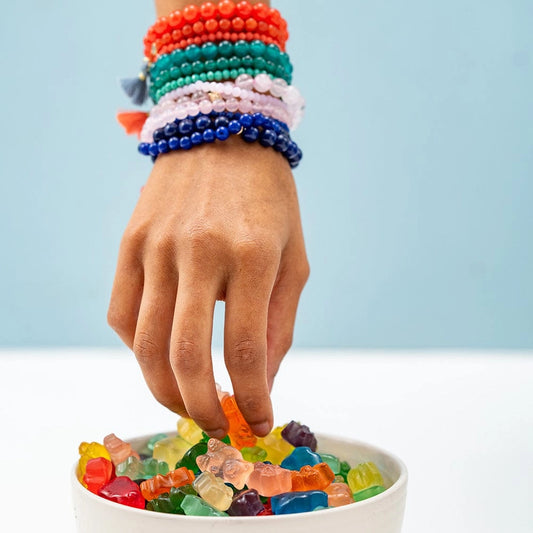 ADDISON SET OF 3 STRETCH BRACELETS GLASS & CRYSTAL W/BAG - ORANGE