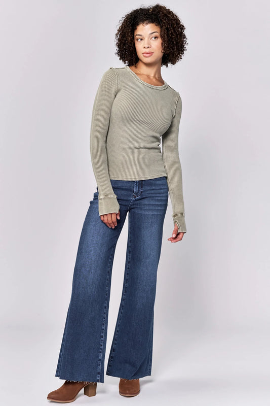 ANIA THERMAL LONG SLEEVE FITTED TOP VETIVER