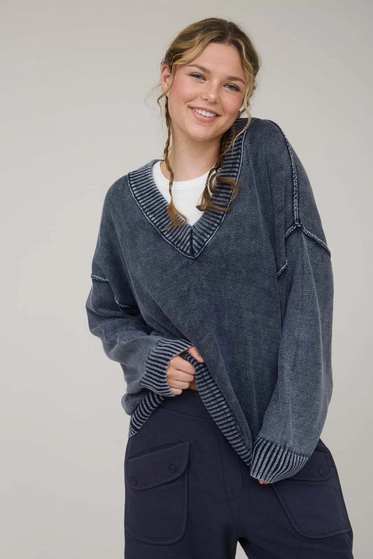 Washed Mock Neck Long Sleeve Pullover Sweater