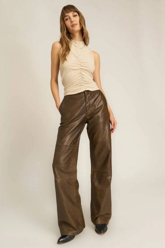 IN YOUR HEAD RUCHED FRONT SWEATER RIB TANK - MOTHER OF PEARL