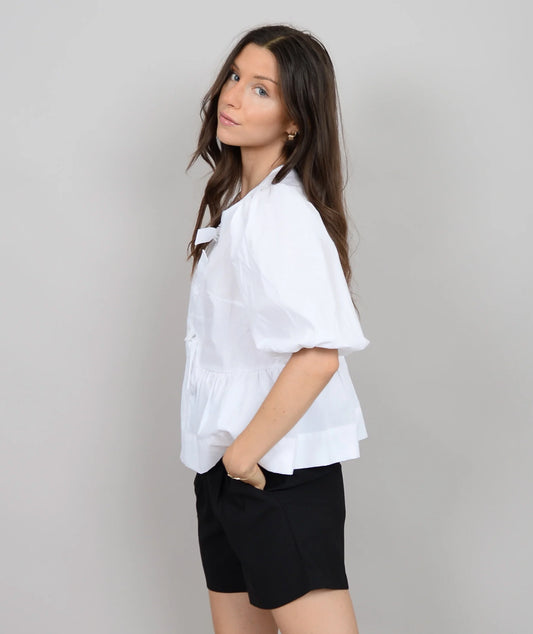 TALLY PUFF SLEEVE FRONT TIE PEPLUM TOP