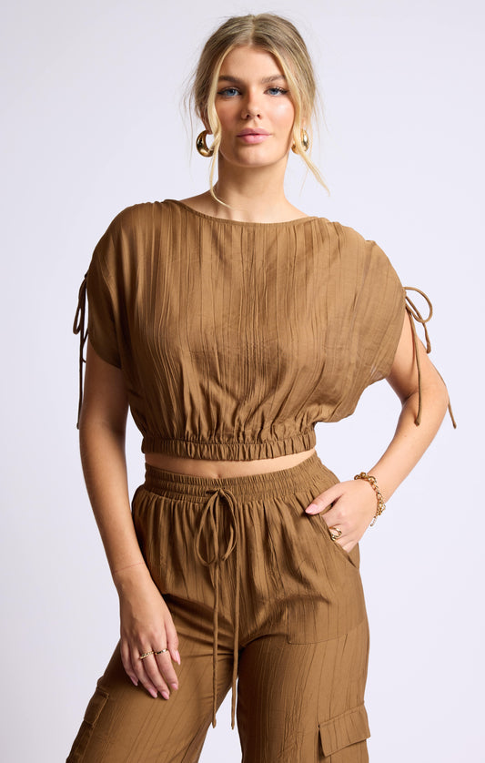 LIGHT A FIRE RUCHED SHOULDER TIE TOP
