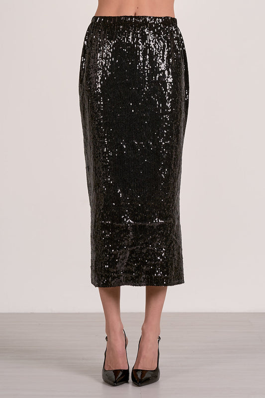 Sequin Midi Skirt - Black