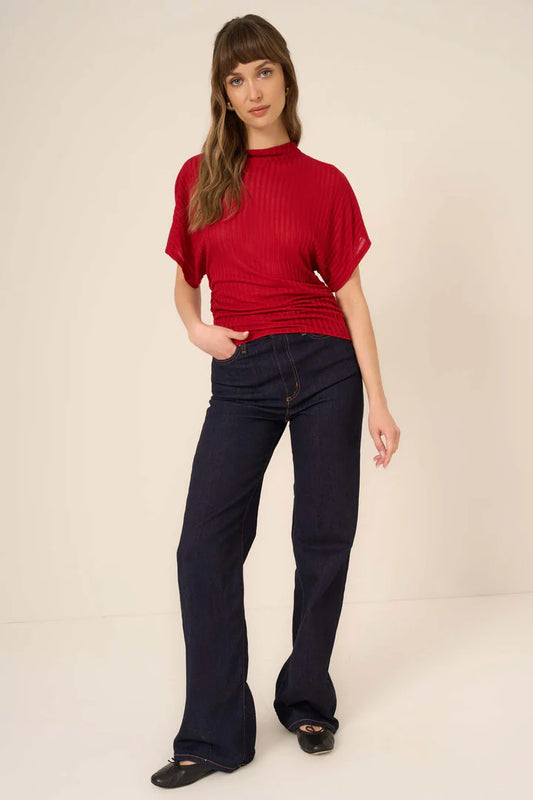 HOLLY FUNNEL NECK DOLMAN TEE - RED