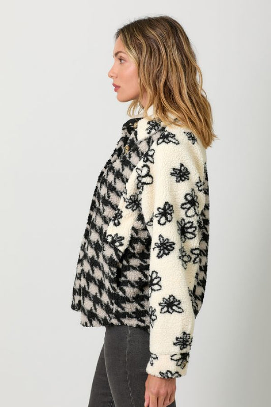 FLOWERS & CHECKS FAUX FUR SHACKET