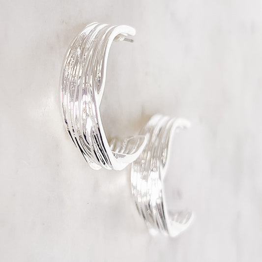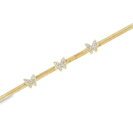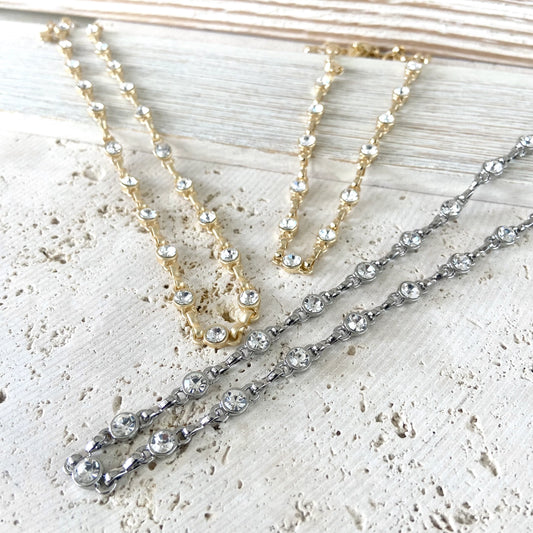 Matte Metal & Crystal Three Strand Bracelet - Silver