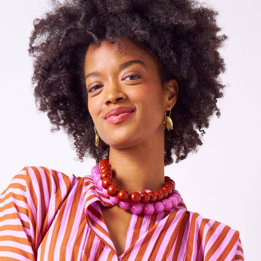 Jenna Chain Link Beaded Necklace - Rust