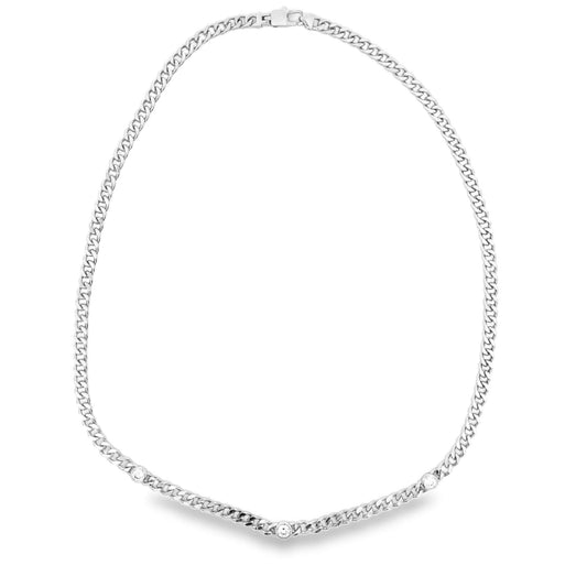 Thin Triple CZ Gemstone Cuban Link Necklace
