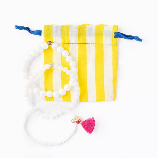 ADDISON SET OF 3 STRETCH BRACELETS GLASS & CRYSTAL W/BAG - WHITE