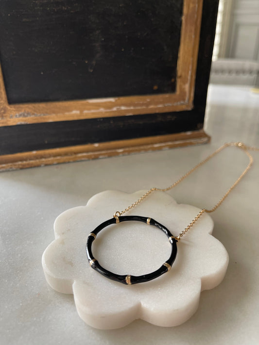 SCARF NECKLACE - BLACK BEZEL GOLD HORSE COIN