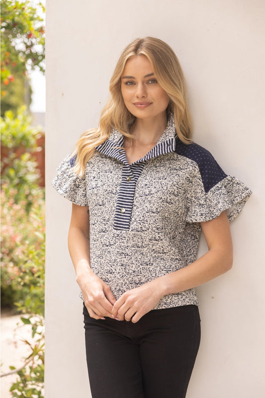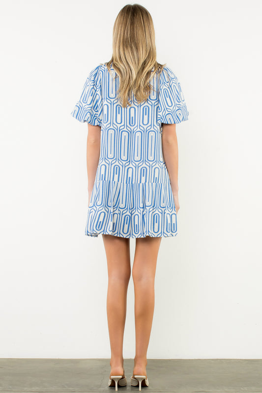 PUFF SLEEVE PRINT BUTTON UP DRESS