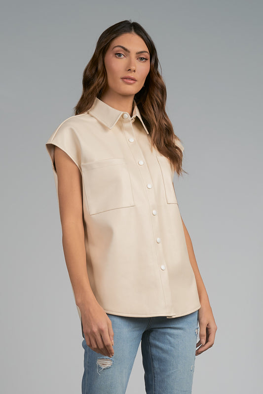CAP SLEEVE FAUX LEATHER TOP