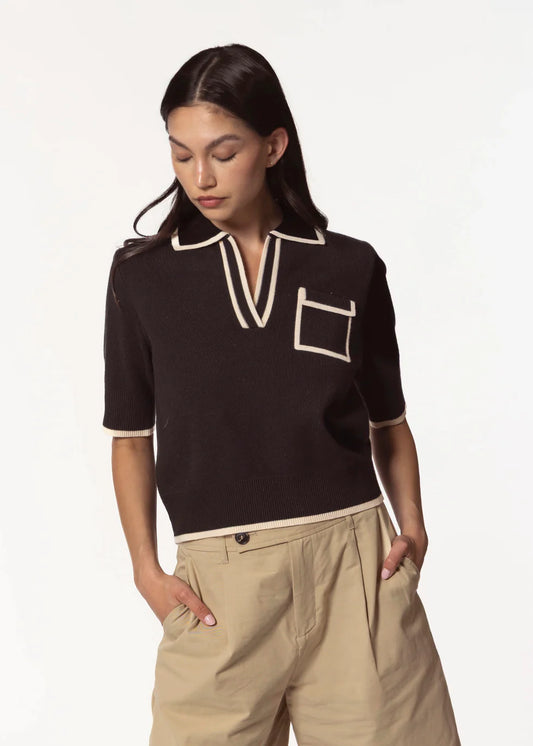 VEDA HEATHERED COZY MOCK NECK - RUSSET BROWN