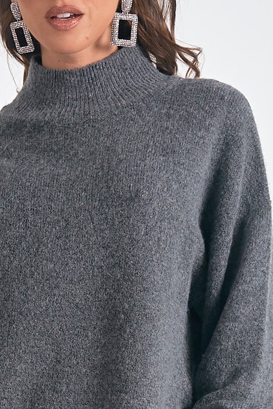 Mock Neck Side Slit Sweater