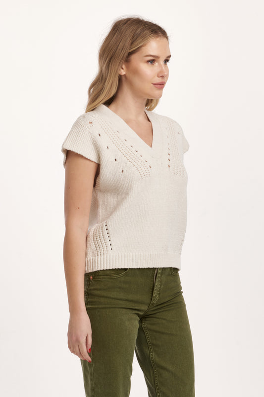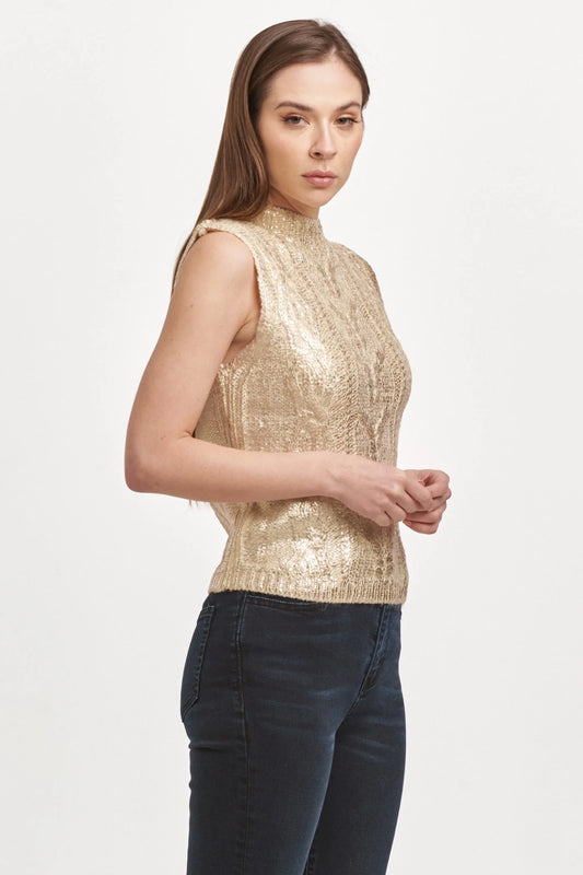 TATIANA CREW NECK SLEEVELESS FITTED SWEATER IVORY WITH ROSE GOLD