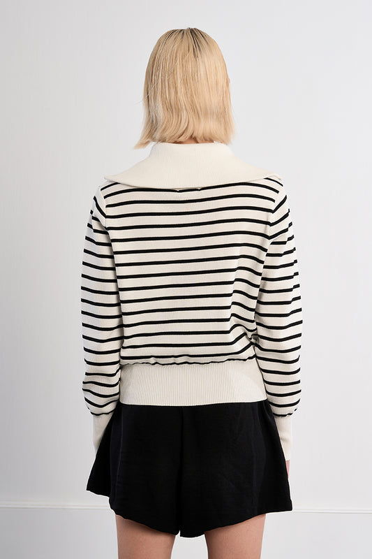 Striped Front Zip Cardigan