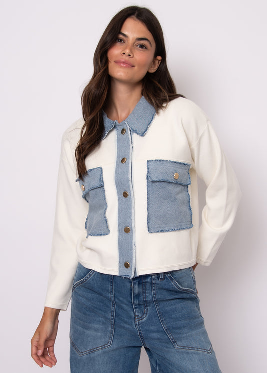 Kellie French Terry W/Denim Long Sleeve Cardigan