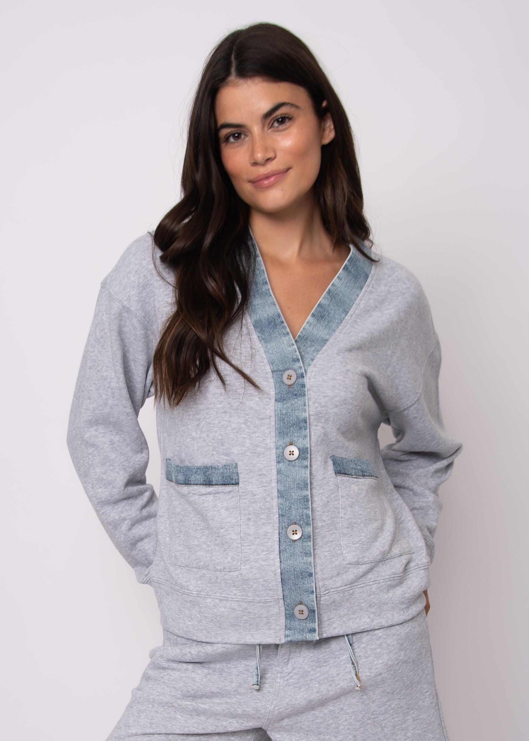Kellie French Terry W/Denim Long Sleeve Cardigan
