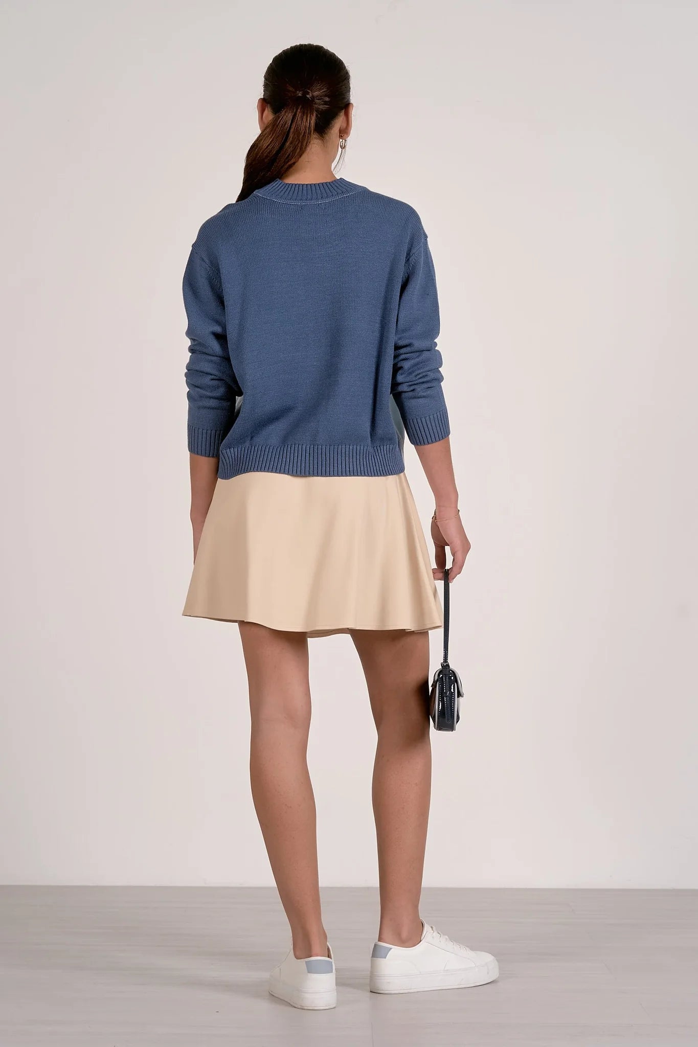 The Mila Sweater is a modern crewneck with a spring pastel colorblock contrast in a soft, cozy knit. Its slim fit makes it easy to layer under trenches, leather jackets, or oversized coats, while the neutral tones add versatility to any fall wardrobe.