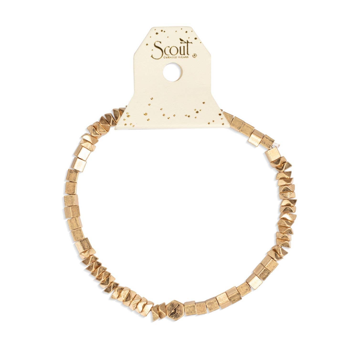 Simple & sophisticated. Each mini metal stacking bracelet features assorted geometric beads for a textural look. Dainty and delicate, they're perfect in any stack to catch the light & add a bit of sparkle.