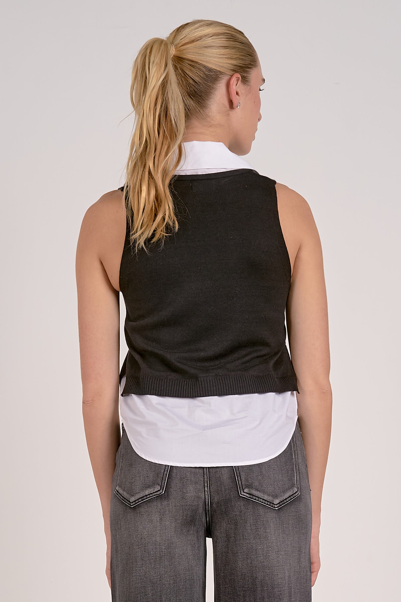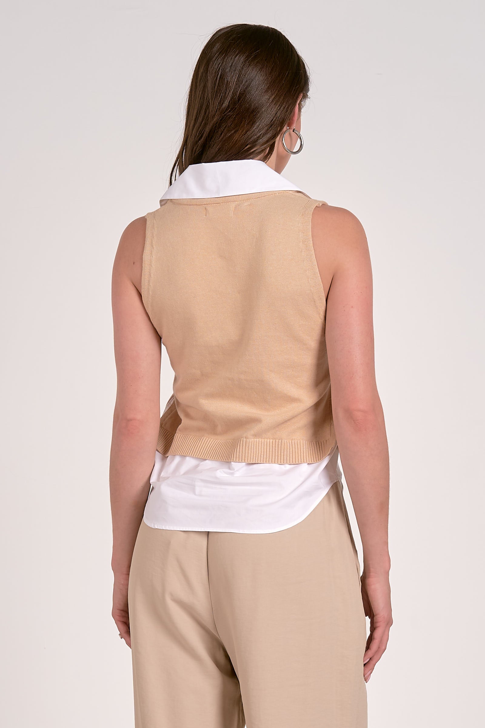 Elevate your wardrobe with the Orly Top. This modern sleeveless sweater features a relaxed fit with a layered design, doing the layering look for you. With a chic V-neckline, this top is perfect for a sophisticated tank top style. Pair it effortlessly with trousers or any bottom for an elevated yet easy-going outfit.