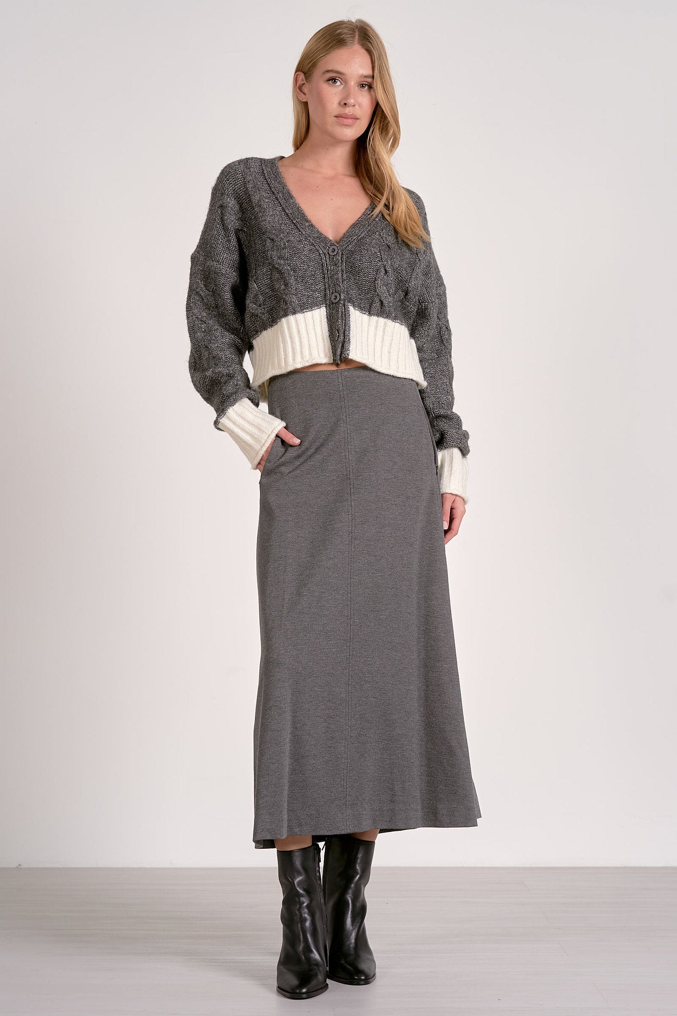 The Carrie Cardigan adds dimension to your wardrobe with its bold color block contrast and easy button up front. Soft and drapey, it layers beautifully over everything from leggings to denim.