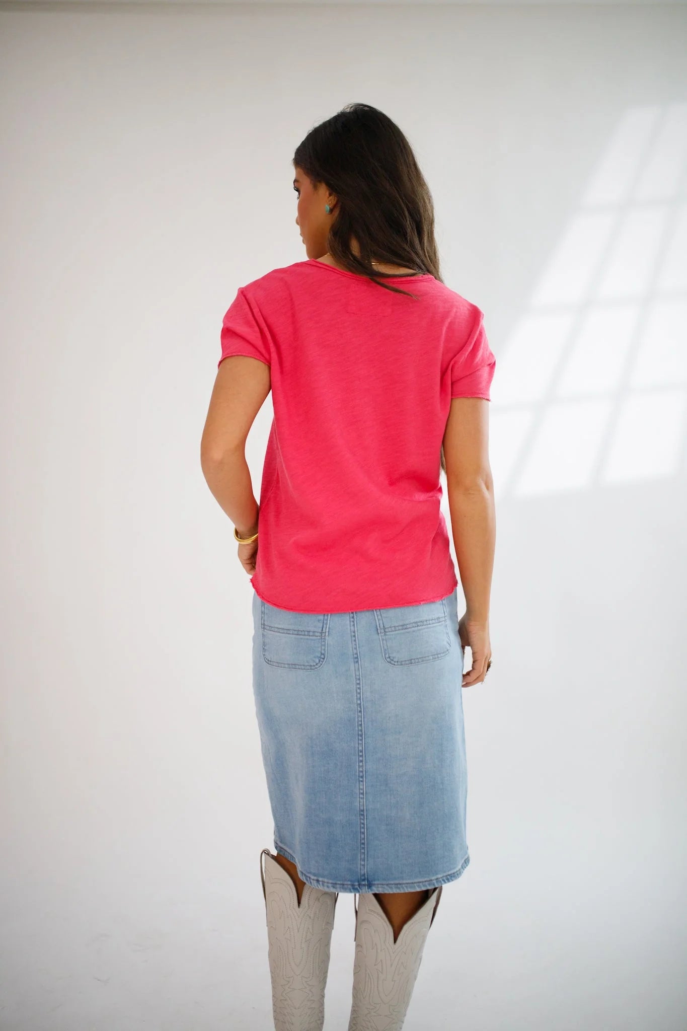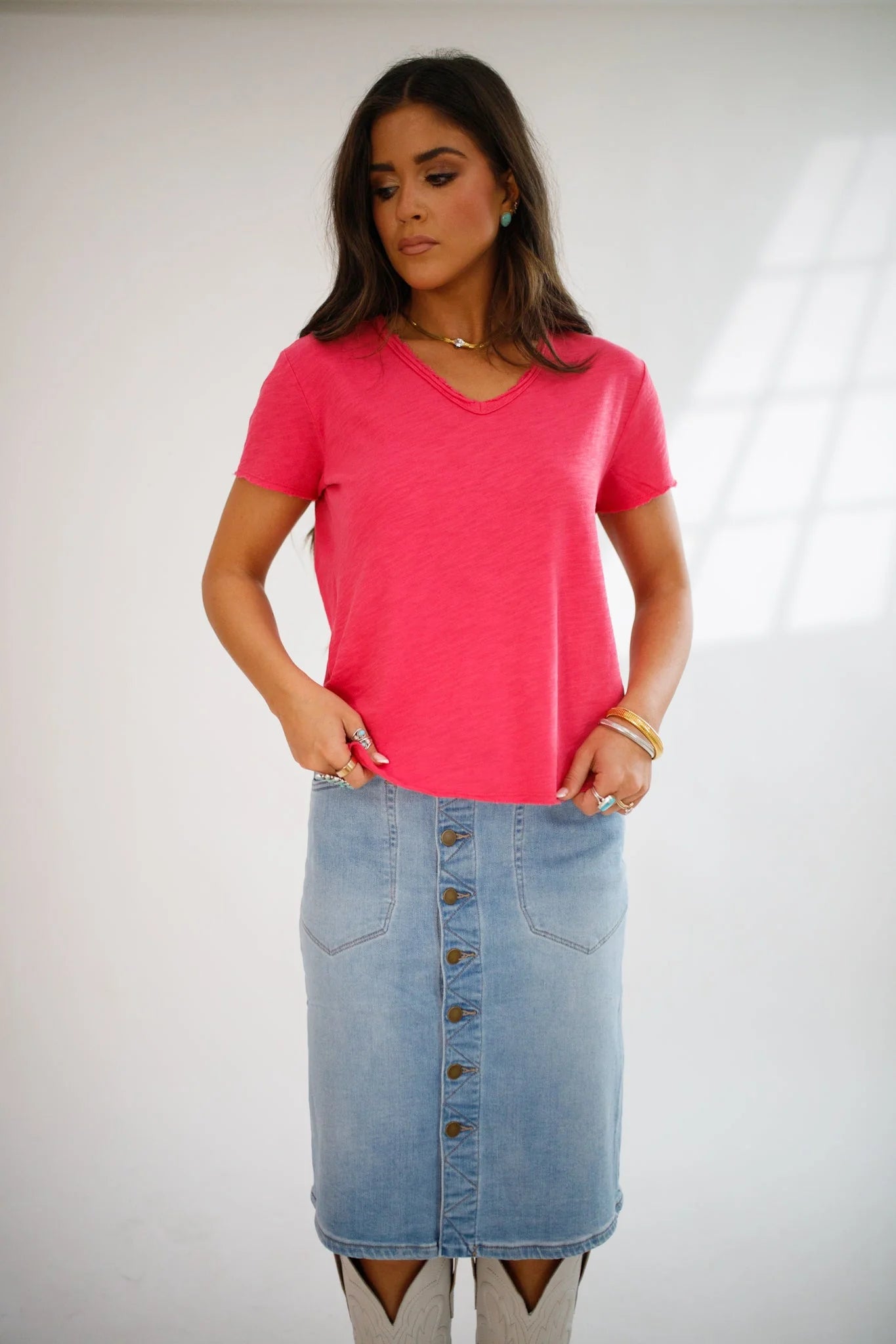 VANYA V-NECK SHORT SLEEVE SLUB JERSEY TOP RASPBERRY